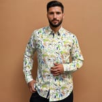 Camisa estampada de corte recto, confeccionada en algodón 100% japonés, perfecta para llevarla en cualquier época del año.