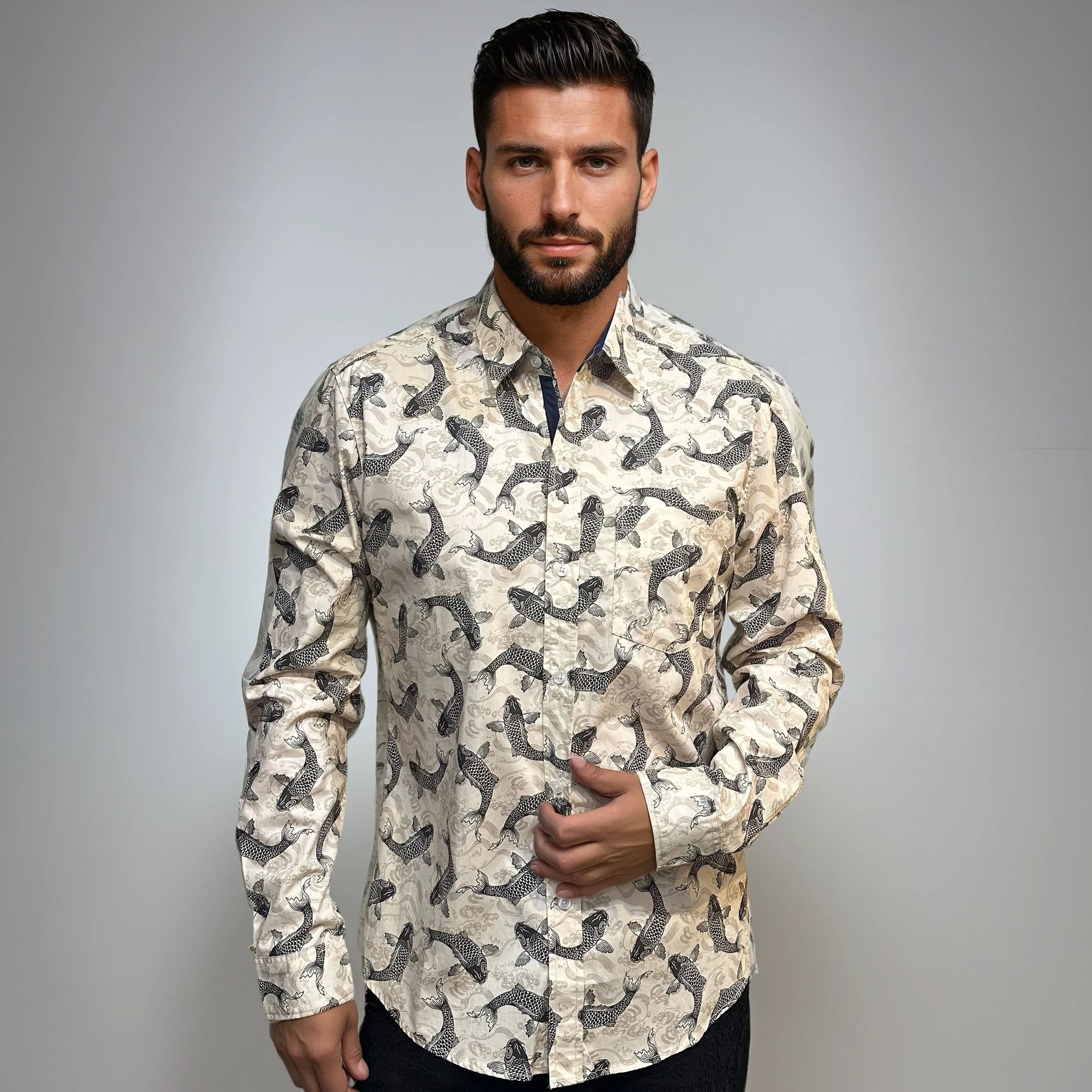 Camisa estampada de corte recto, confeccionada en algodón 100% japonés, perfecta para llevarla en cualquier época del año.