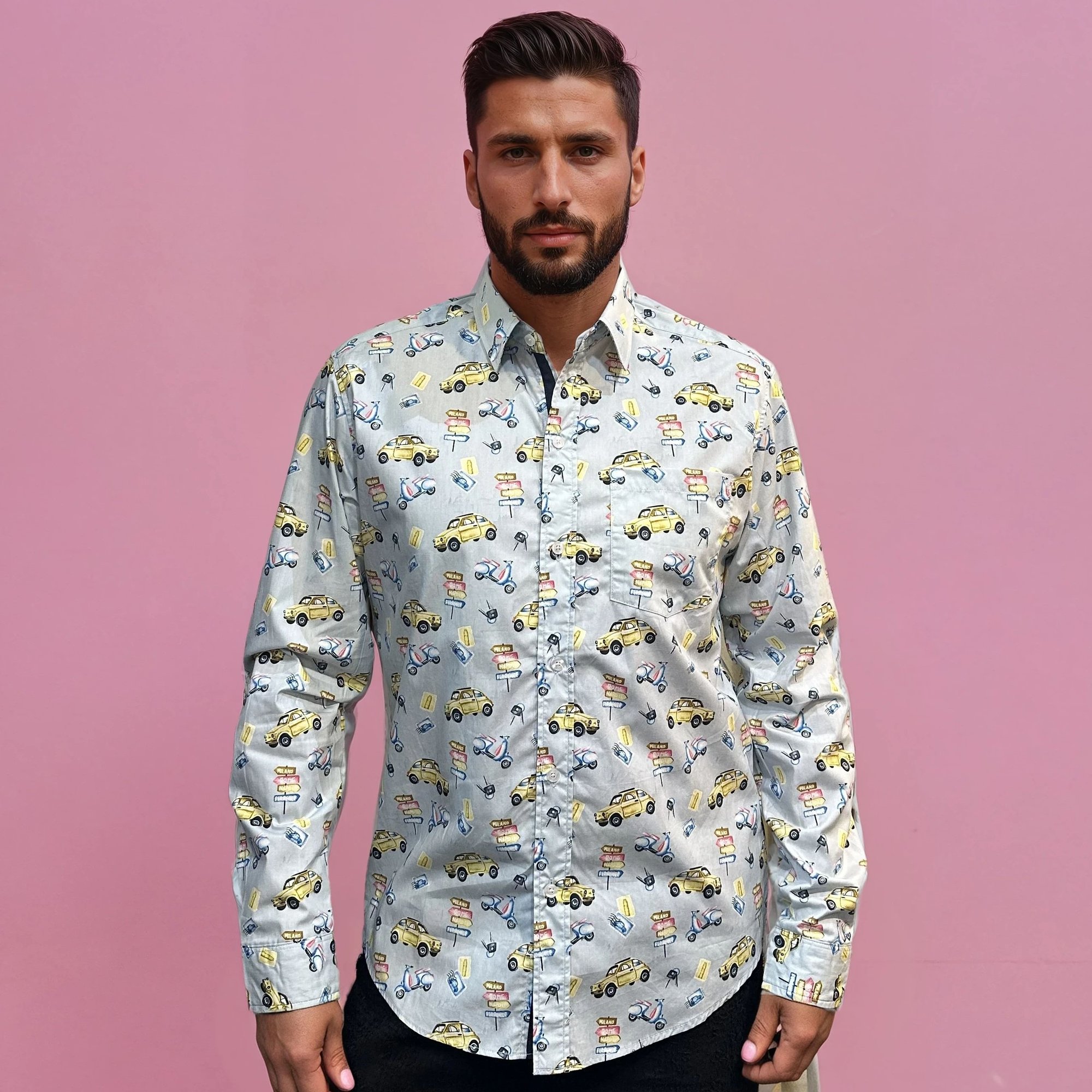 Camisa estampada de corte recto, confeccionada en algodón 100% japonés, perfecta para llevarla en cualquier época del año. Disfruta de la comodidad nuestras camisas, que ofrecen un aspecto impecable. Dale un toque original a tu outfit.