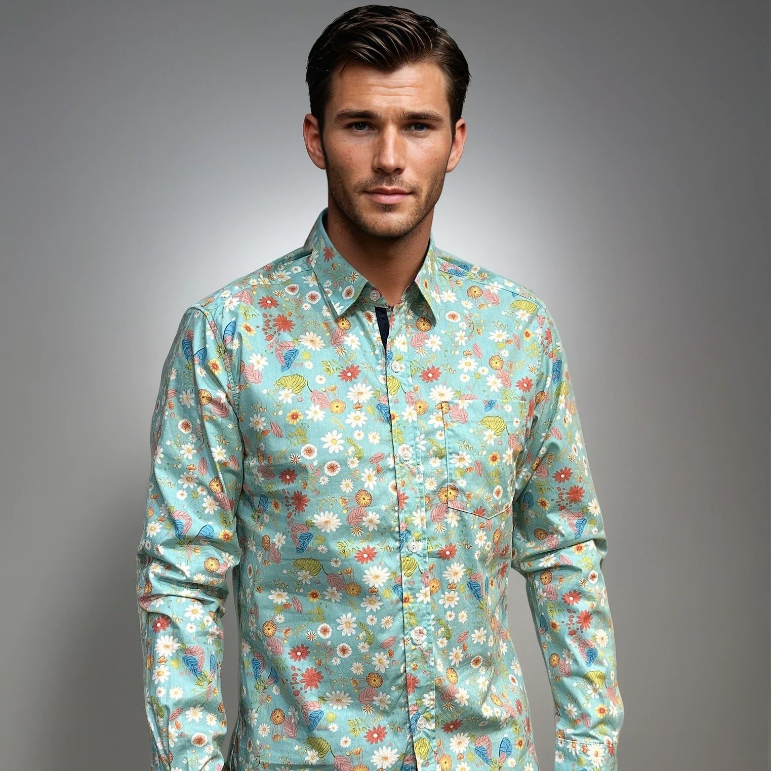 Camisa estampada de corte recto, confeccionada en algodón 100% japonés, perfecta para llevarla en cualquier época del año.