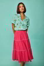 Camisa estampada de diseño recto. Cuello camisero. Manga larga. Cierre delantero con botones.