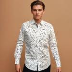 Camisa estampada de corte recto, confeccionada en algodón 100% japonés, perfecta para llevarla en cualquier época del año.