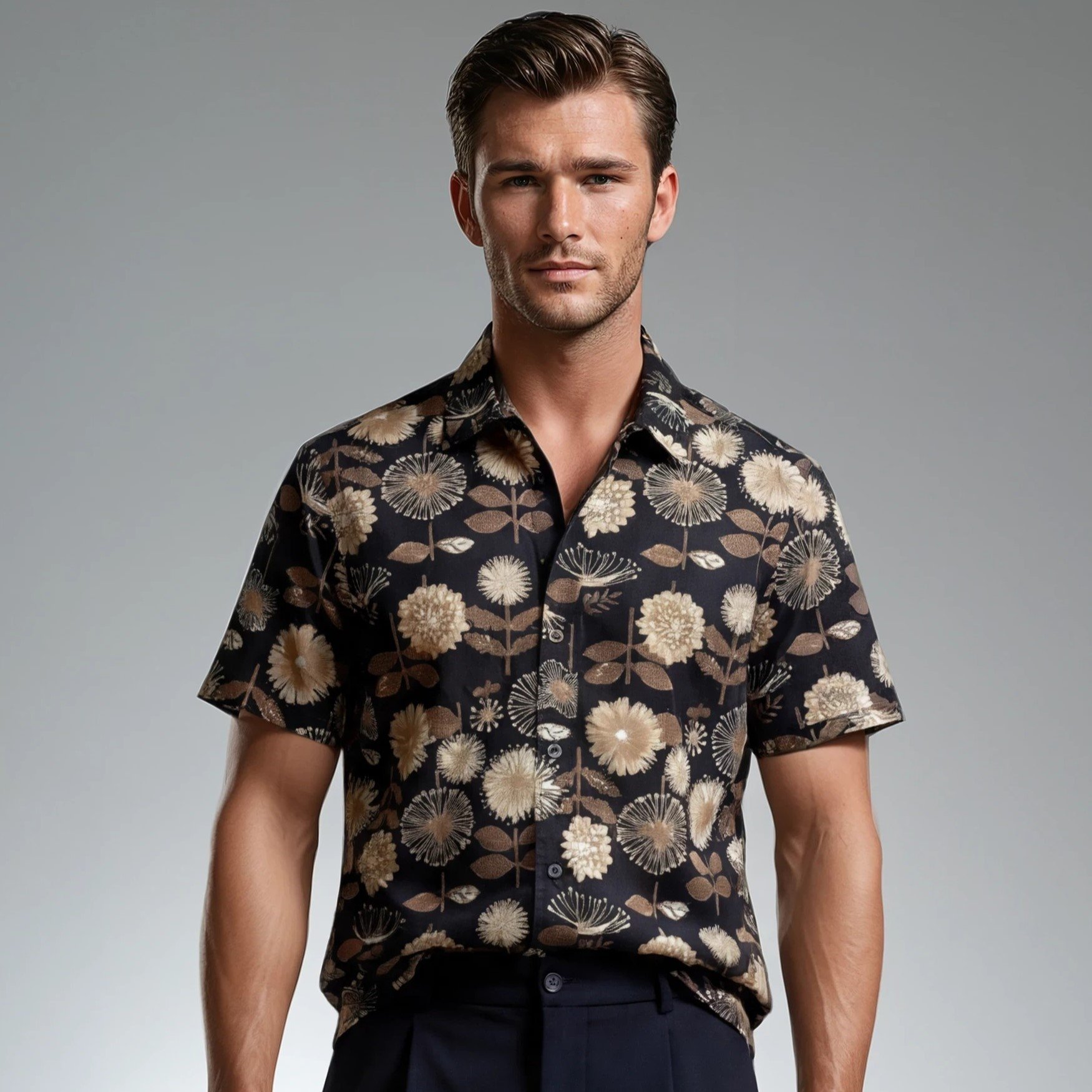 Camisa estampada de corte recto, confeccionada en algodón 100% japonés, perfecta para llevarla en cualquier época del año.