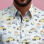 Camisa manga corta coches azul denim