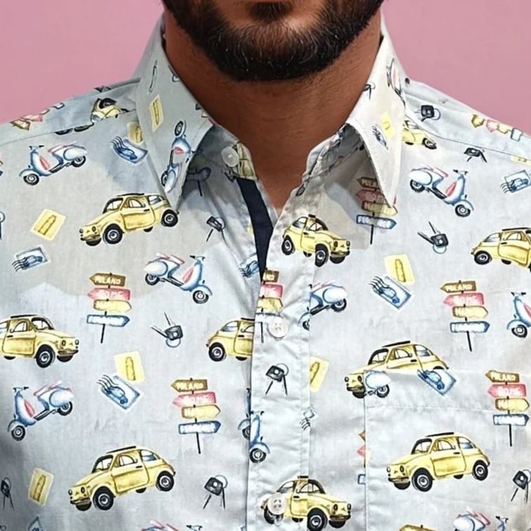 Camisa estampada de corte recto, confeccionada en algodón 100% japonés, perfecta para llevarla en cualquier época del año.