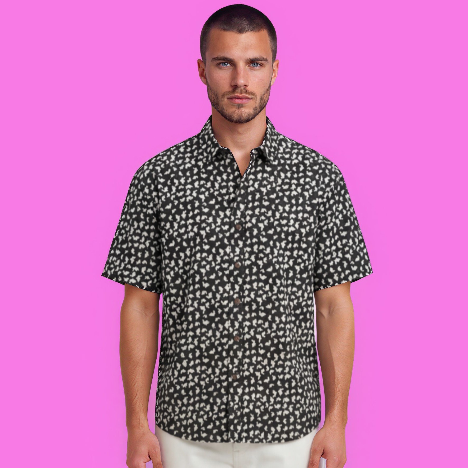 Camisa estampada de corte recto, confeccionada en algodón 100% japonés, perfecta para llevarla en cualquier época del año.