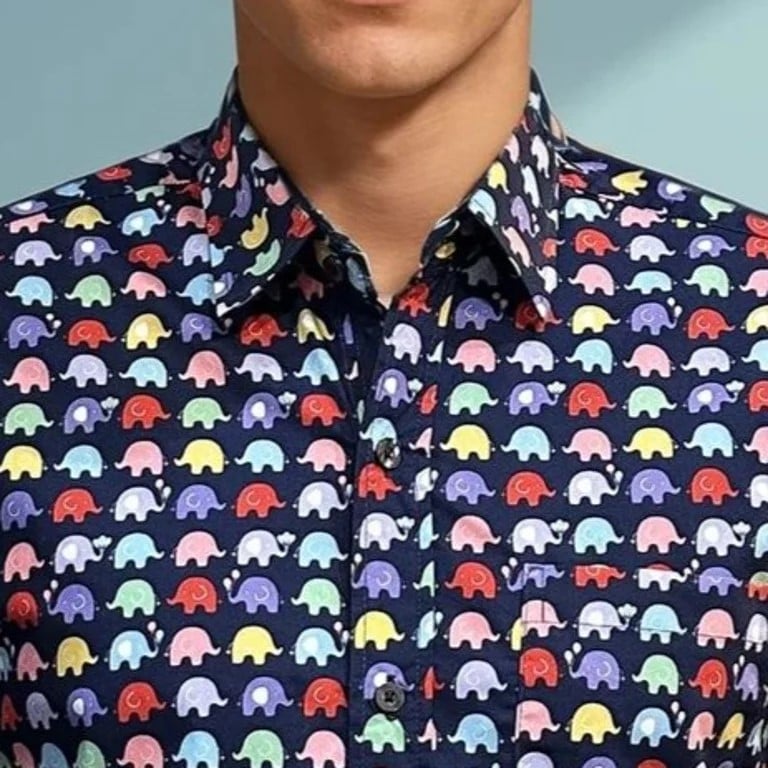 Camisa manga corta elefantes azul