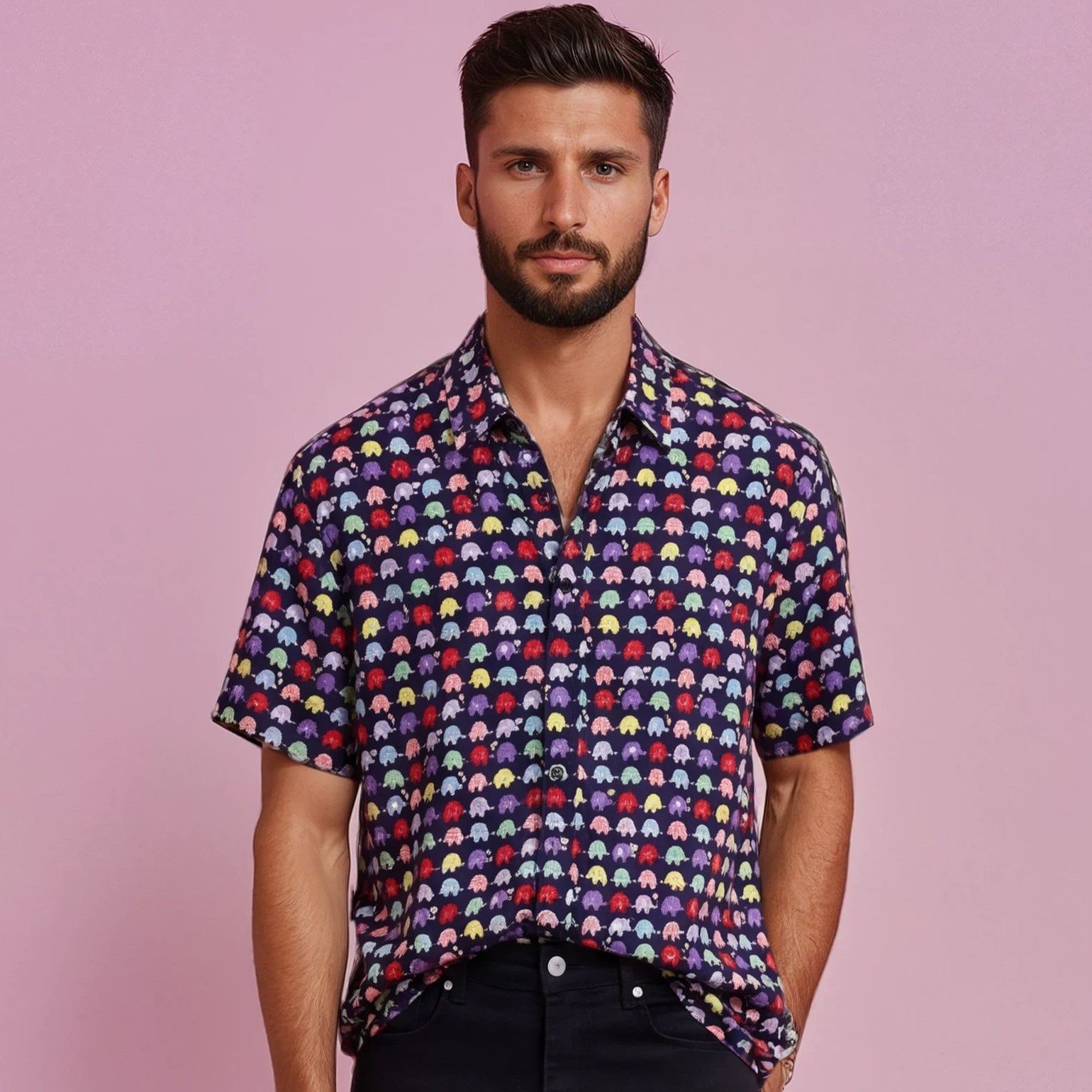 Camisa estampada de corte recto, confeccionada en algodón 100% japonés, perfecta para llevarla en cualquier época del año.
