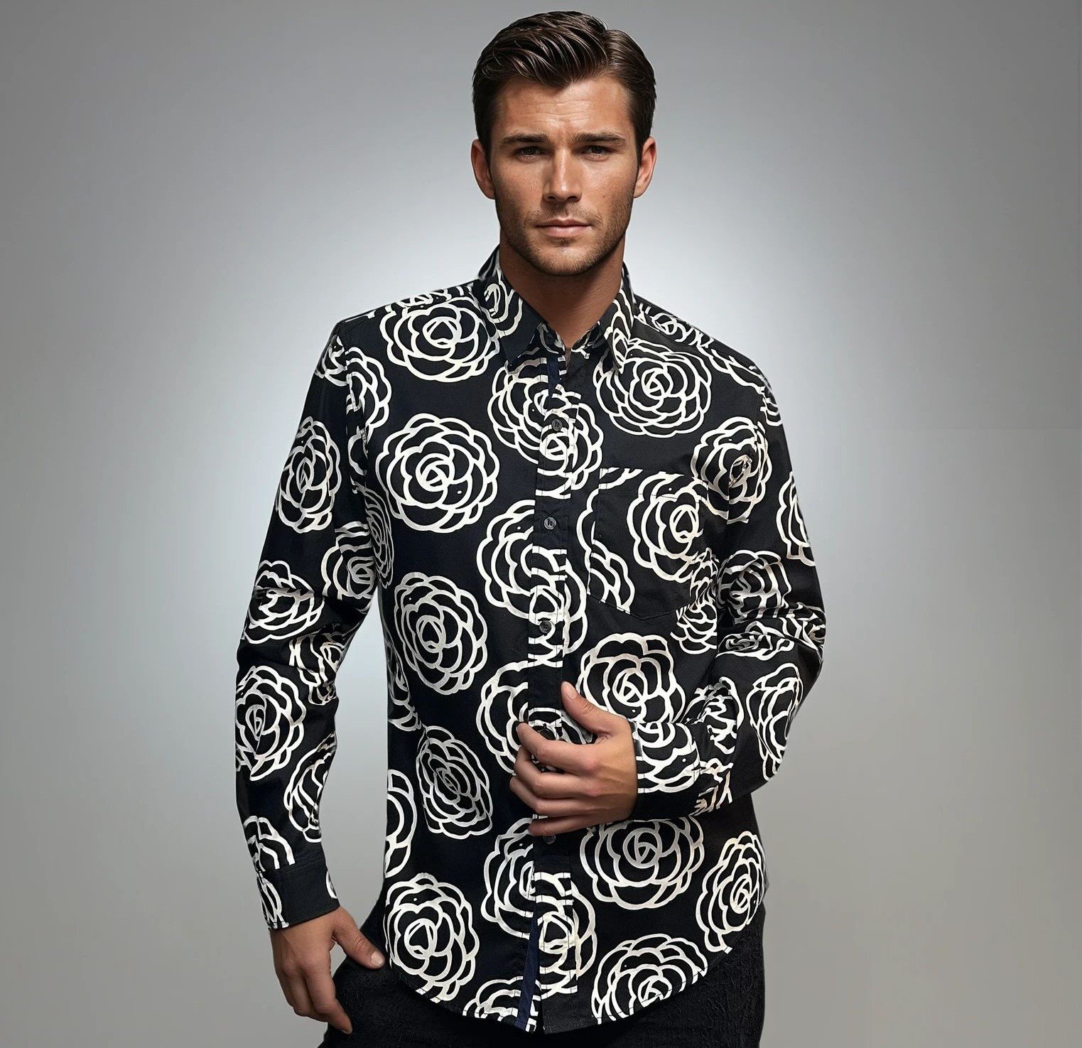 Camisa estampada de corte recto, confeccionada en algodón 100% japonés, perfecta para llevarla en cualquier época del año.