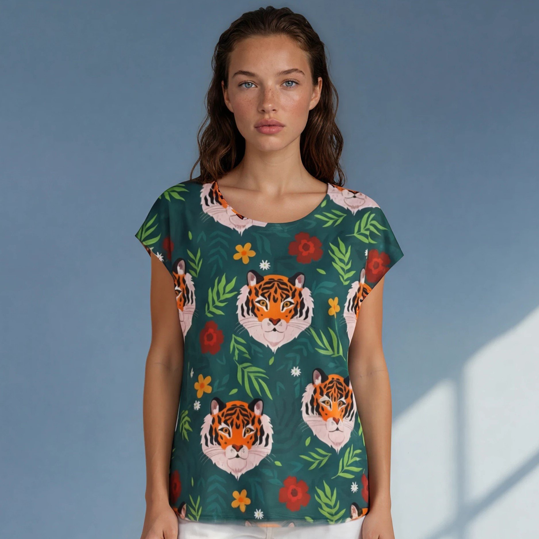 Camiseta estampada de viscosa fría muy cómoda para las temperaturas cálidas.
