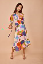 Vestido largo cruzado tipo pareo, falda con forro de algodón.
