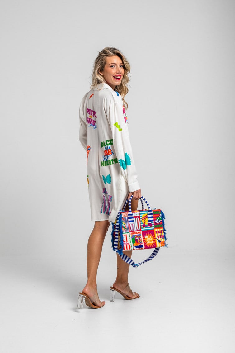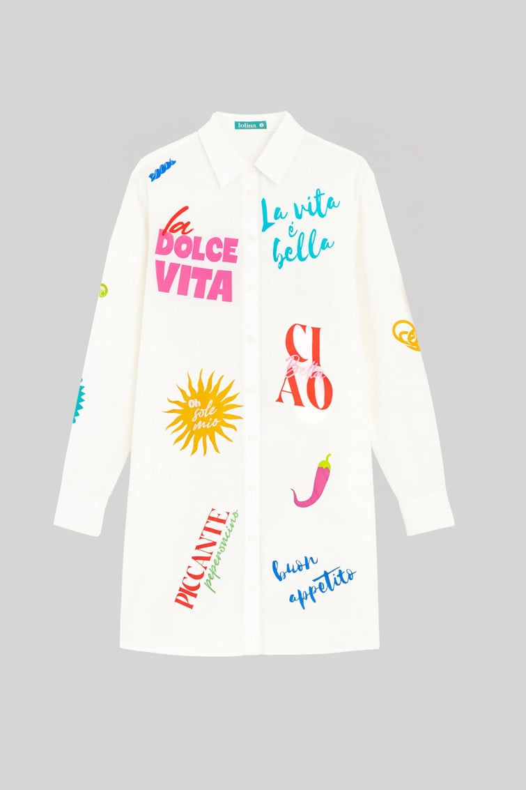 Vestido camisero blanco con textos
