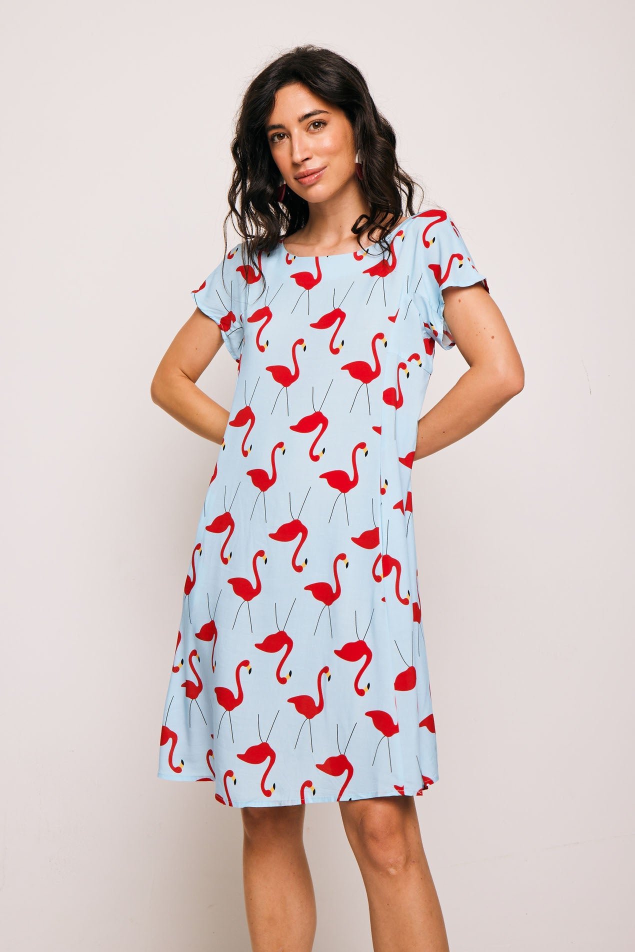 vestido corto flamencos celeste