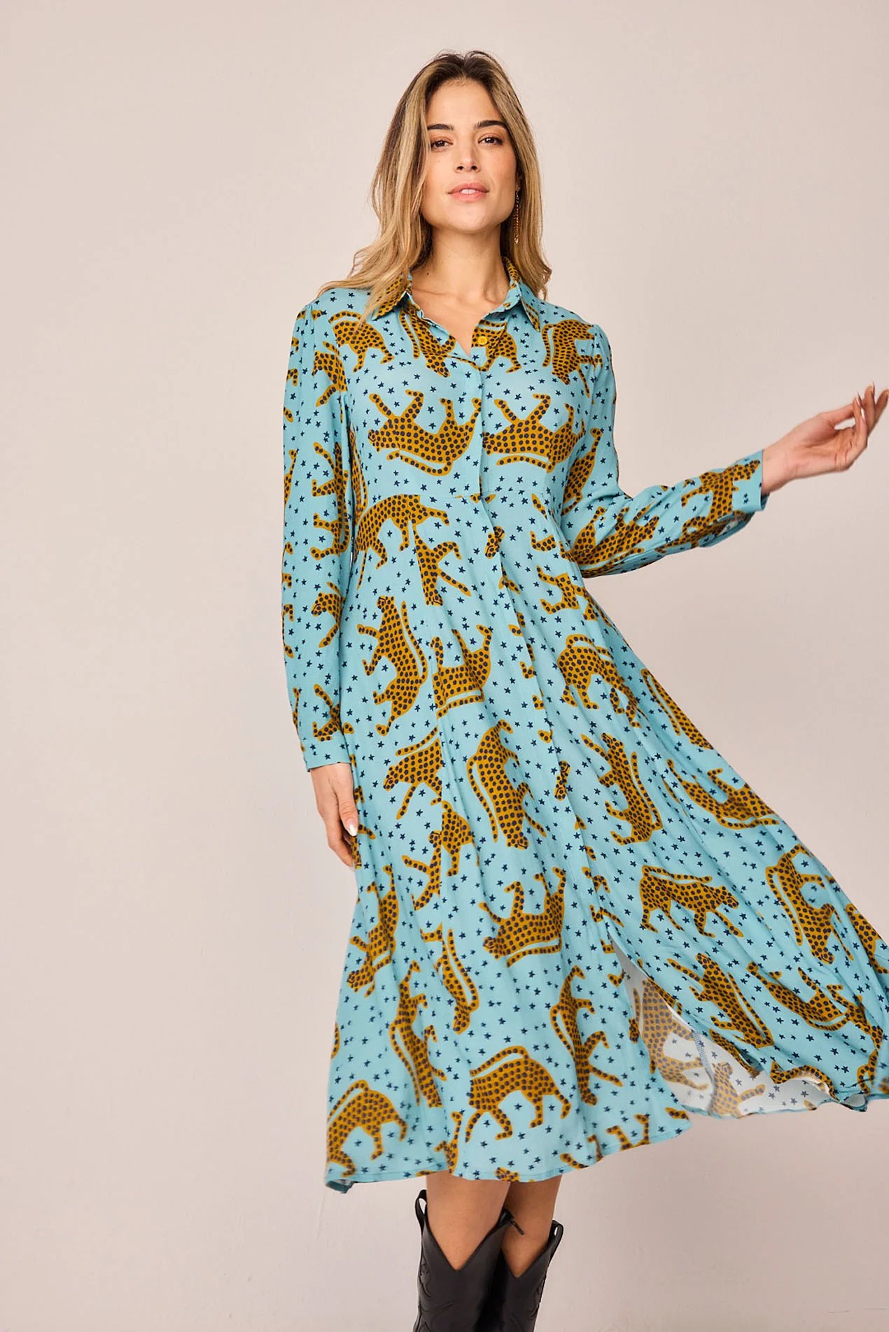 Vestido largo camisero con cinturón tipo fajín y bolsillos, las magas tienen un poquito de vuelo y la parte inferior con forro de algodón.